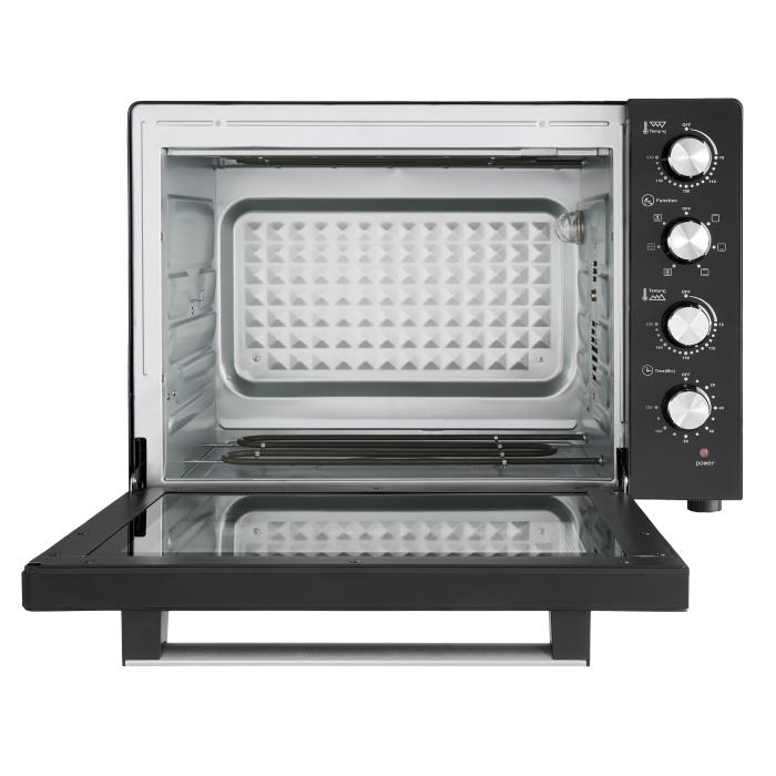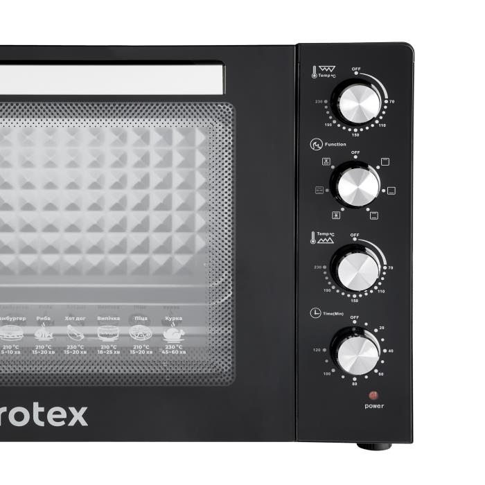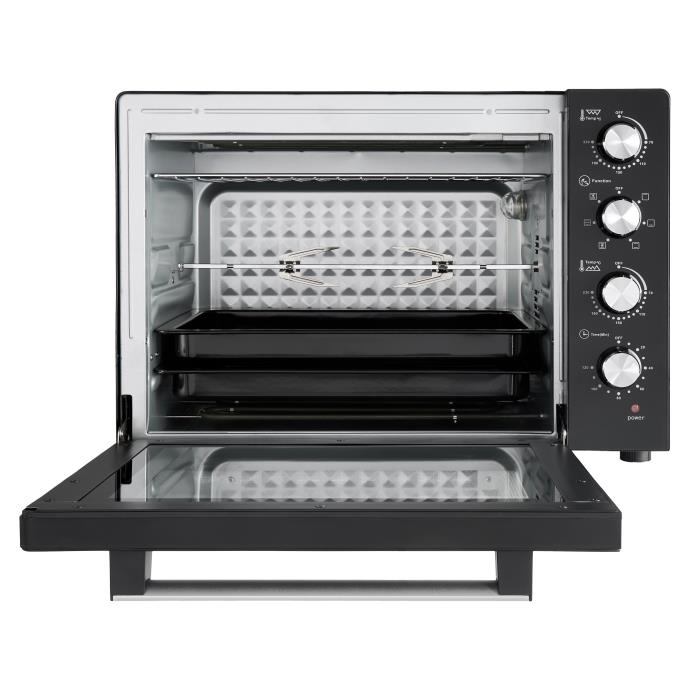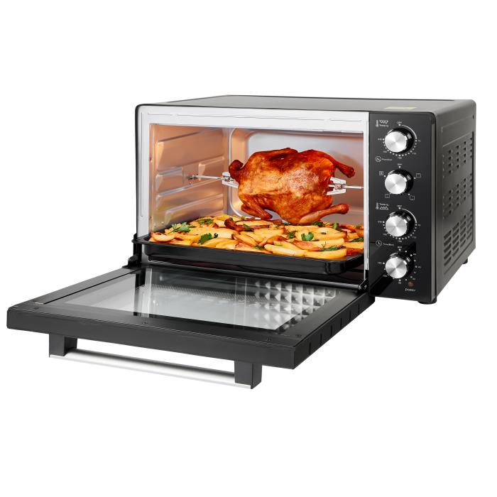 Потужність 2200Вт, Об'єм: 60л, Тип управління: механічний. Габарити: 580 x 440 x 412 мм, 6 режим роботи. Функції: конвекція+гриль. Таймер 120 хв. Довжина шнура 1,1 м. Колір: чорний. Книга 50 рецептів.