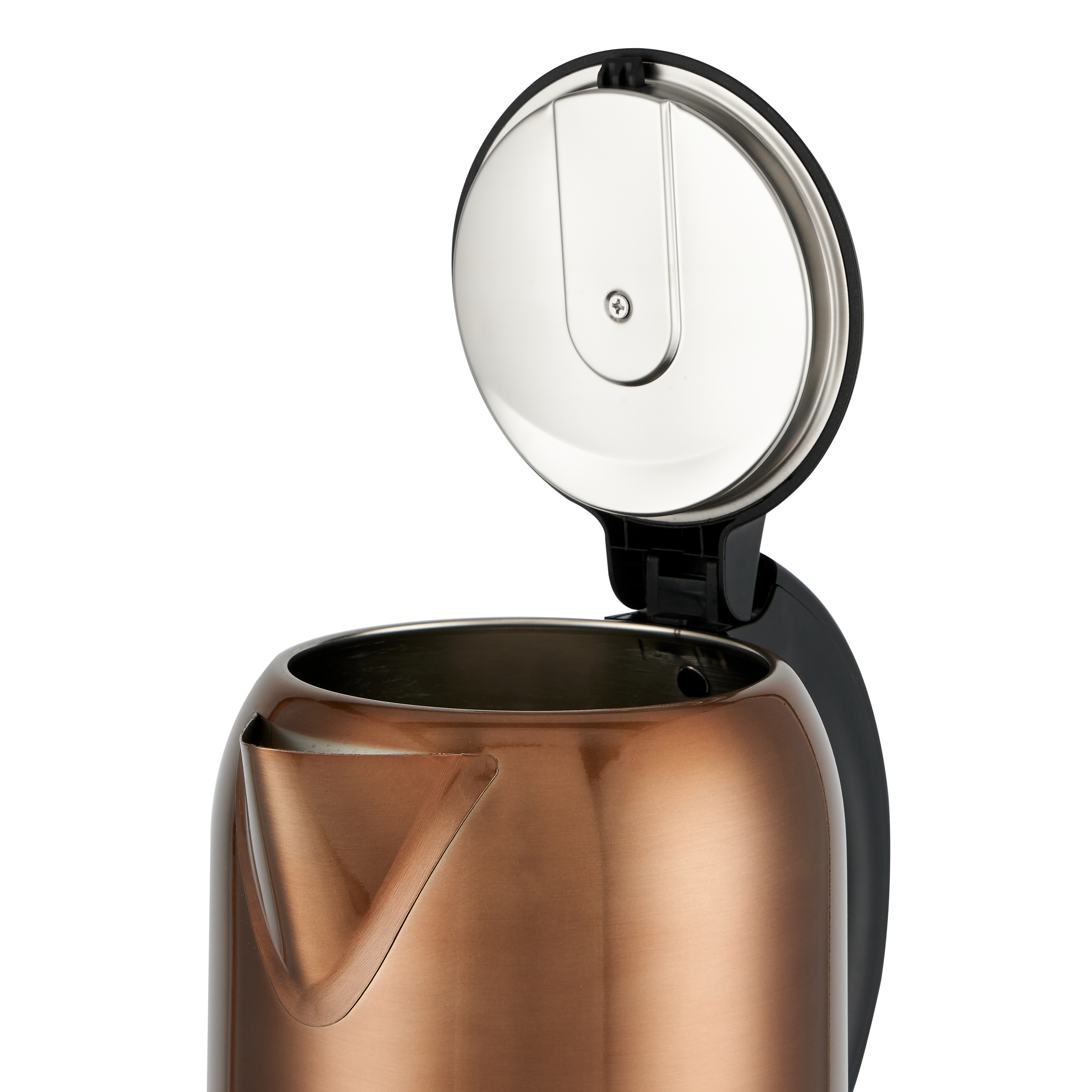 Мощность 1800Вт, Емкость 2 л. закрытый нагревательный элемент из нержавеющей стали, защита от перегрева, автоотключение при отсутствии воды, автоотключение при закипании, индикатор включения, поворотная база 360 °, корпус из нержавеющей стали, цвет - бронза, гарантия - 1 год.